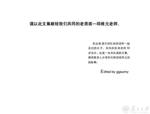 厚厚书页前的扉页上,写着这样一行字:“谨以此文集献给我们共同的老男孩——邱维元老师”。