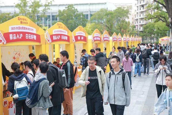 场外,饮食文化互动区同样人头攒动。非遗手工、食品知识科普、社团文化展示等20余个互动点位,让师生在品尝美食的同时,感受四方风土人情。