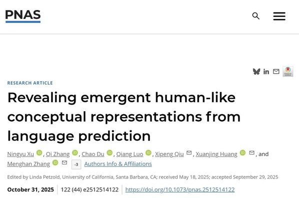 这一研究结果表明,“预测下一个词”的训练能够让大语言模型在缺乏现实世界联结(real-world grounding)的情况下学习到和人类相似的概念表示。这种概念表示成功融合了人类概念的关键属性,能够有效解释人类行为以及大脑中的概念编码,为解决人类概念是如何表征和组织的这一核心认知问题提供了新的假设和启发。