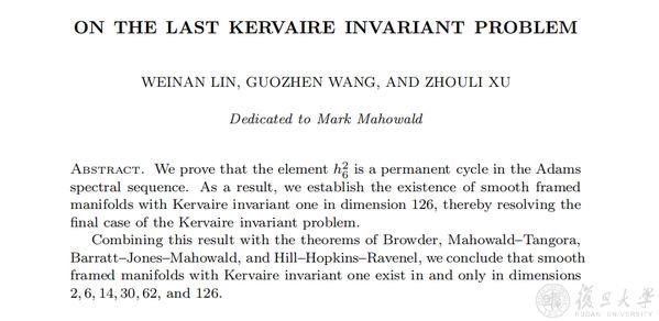 王国祯与合作者解决61维球面微分结构唯一性论文
