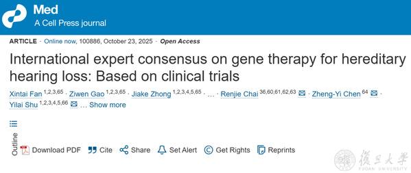 2025年10月23日,由复旦大学附属眼耳鼻喉科医院领衔的全球首个遗传性耳聋基因治疗国际专家共识在期刊《医学》(Med)上正式发布。该共识由该院舒易来团队牵头,联合哈佛大学医学院Zheng-Yi Chen、东南大学柴人杰和美国哥伦比亚大学医学中心Lawrence R. Lustig等,召集全球包括中国、美国、西班牙、英国、韩国和德国等国家的46位耳科学、遗传学、听力学、基因治疗及听觉康复等多学科领域专家,历时1年余共同制定。该共识严格采用改良版德尔菲法,最终形成30条共识声明,内容涵盖伦理审查(1条声明)、患者筛选(12条声明)、术前诊断和评估(9条声明)、基因治疗药物递送(4条声明)、术后随访(3条声明)及听觉言语康复(1条声明)六大关键模块,为全球范围内遗传性耳聋基因治疗的临床应用提供了首个标准化框架。