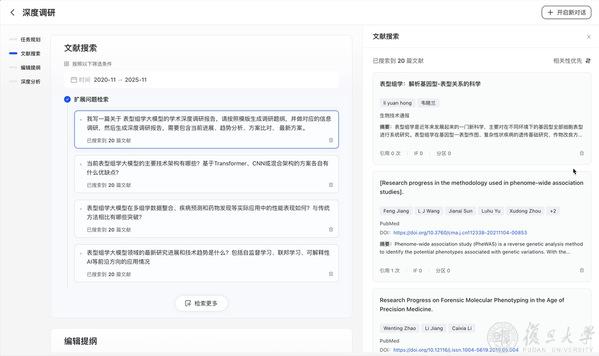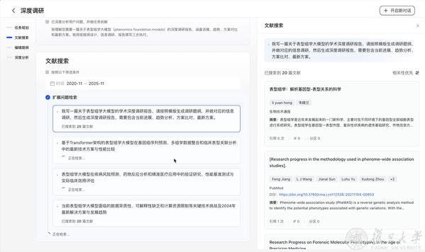更重要的是,整个过程打破“黑箱”模式,将关键词扩展、文献筛选、内容方向等中间过程透明化,使用者可不断介入、“干预”检索逻辑,让AI的输出更贴合专业判断与研究意图。
