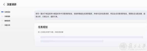任务开始后,用户可以在“任务规划”板块清晰看到AI如何深度分析问题,并拆解成几个核心子主题。