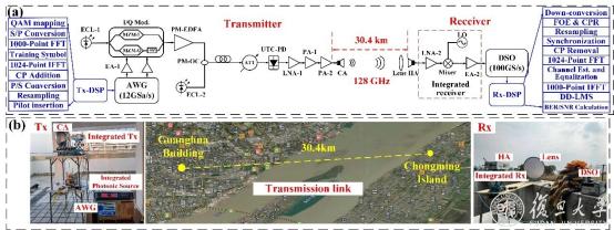 10月2日,未来信息创新学院余建军教授团队首次将20Gbps的太赫兹信号在128GHz频段实现了30.4公里的超远距离无线传输,相关研究成果以“Demonstration of 30.4-km 20-Gbps Terahertz Wireless Trans-mission Utilizing CR-MRC algorithm for OFDM Signals M”为题发表。