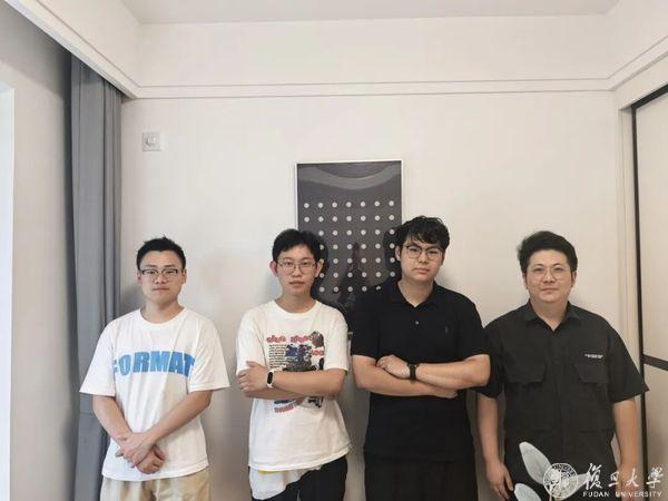 荣获复旦大学“卓越杯”一等奖后,张一弛(中)和成员合影留念