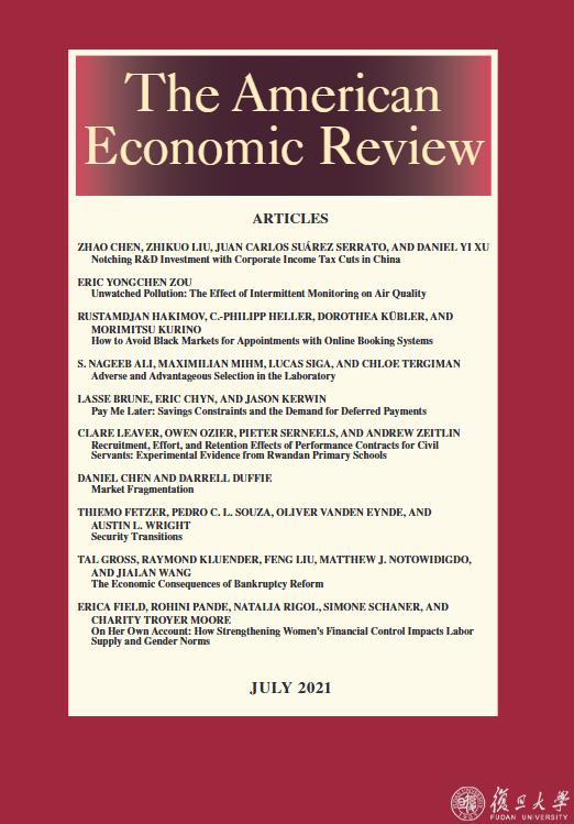 论文“Notching R&D Investment with Corporate Income Tax Cuts in China”(注:《中国企业所得税优惠与企业研发投资激励》)封面