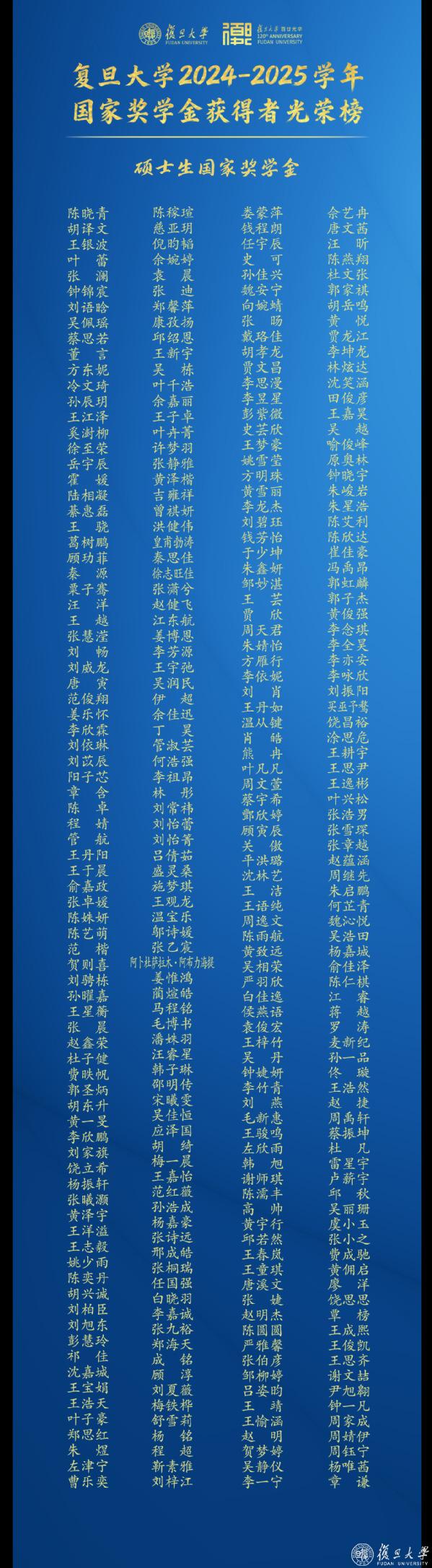 副校长、奖(助)学金评审委员会副主任周磊宣读复旦大学2024-2025学年奖学金获奖学生名单。