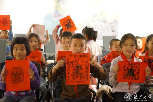楼上村孩子们在学习印制春贴