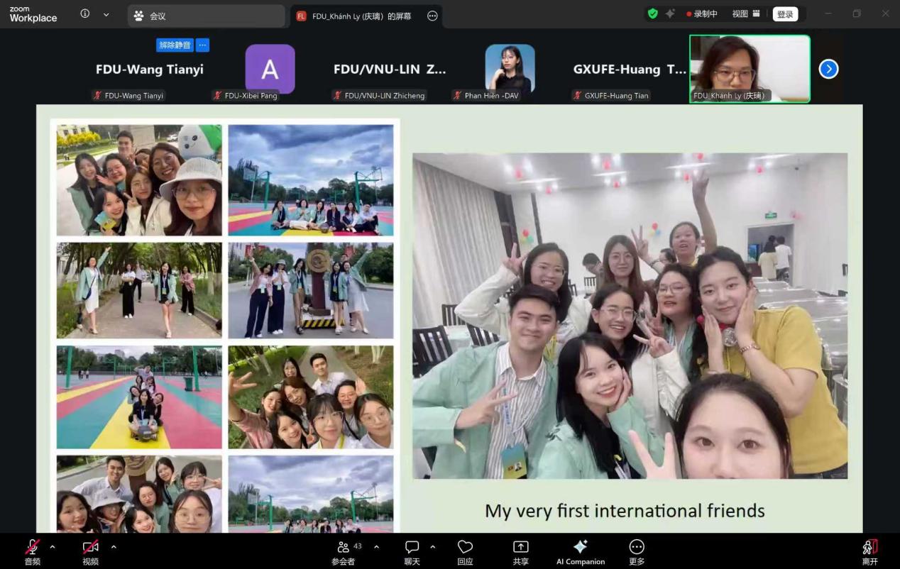 活动最后,中越青年代表们纷纷表示,今年在各种场合见面、今天线上对话活动的场景仍历历在目,期待未来能够再次聚首,深化交流、加深友谊,大家也将以此次对话为新的起点,持续加强语言互学、文化互鉴、成长互助,依托澜湄青创赛平台,同时在更为广阔的交往实践中,以青春之力推动中越青年深化互信、共谋发展,为构建更加紧密的中越命运共同体注入源源不断的青春活力。