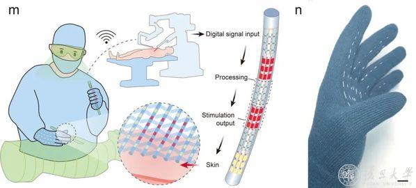 “医生戴着它做远程手术,能清晰感知脏器硬度;游戏玩家佩戴时,能逼真触摸虚拟道具,就像拥有了‘第二皮肤’。”王臻解释道。目前,团队正与附属中山医院科研团队合作,探索将“纤维芯片“技术应用到心血管介入器械中,有望辅助医生更精准地完成手术。
