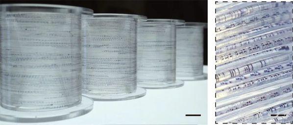 “纤维芯片”显示多层旋叠架构的三维重构荧光标记照片
