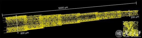 “纤维芯片”及其内部局部电路光学照片