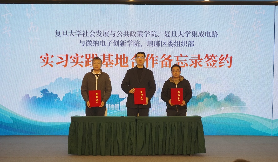 在本次交流研讨活动后段,复旦大学社会发展与公共政策学院、复旦大学集成电路与微纳电子创新学院、琅琊区委组织部就实习实践基地进行了合作备忘签约,滁州市委党校马克思主义基本理论教研室、琅琊区委组织部启动“让泉润心”党建研究项目,启动“让泉”党员教育等商标注册。在本次交流研讨活动的最后,复旦大学中国式现代化行动研究(琅琊区)实验基地首席专家、复旦大学国家文化创新研究中心主任孟建教授代表联合倡议单位宣读了题为“发扬让泉文化,建设让泉社区”的《让泉倡议》。