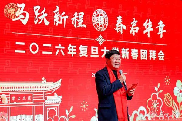 龙骧虎步辞旧岁,骏马奔腾启新程。1月30日上午的光华楼13楼多功能厅张灯结彩、笑语盈盈,2026年复旦大学新春团拜会在此热烈举行,学校师生代表欢聚一堂,共迎丙午马年的到来。