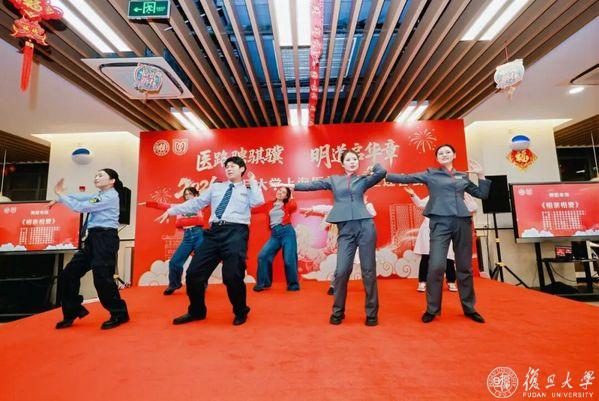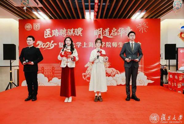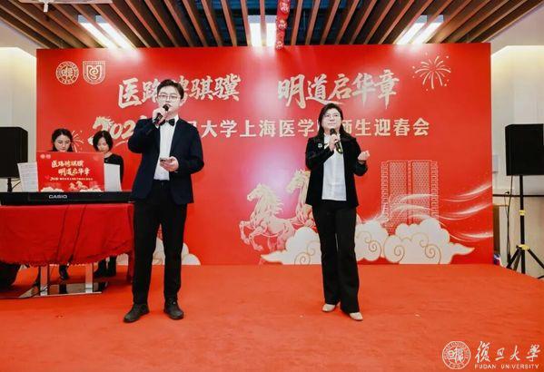 复旦大学校长、上海医学院院长金力,上海医学院党委副书记杨伟国,上海医学院党委副书记、副院长徐军,上海医学院党委副书记、纪委书记胡华忠,以及学校相关职能部门、各附属医院、各院所平台的教师代表和留校学生代表欢聚一堂,共迎丙午马年。