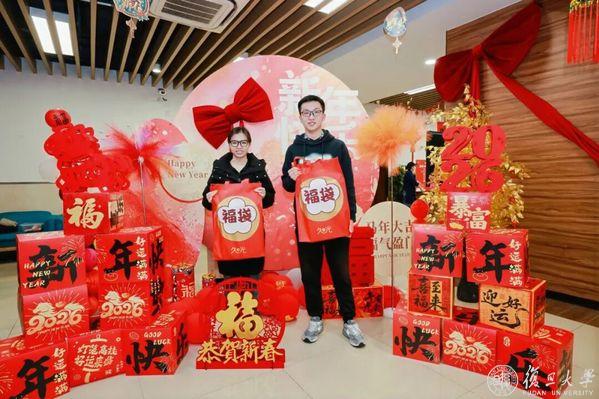 复旦大学教育发展基金会积极联系校董企业利福国际集团刘今晨校董和刘洪文燕女士,为本次迎春会捐赠了一批充满年味和福气的礼包。上海复繁信息科技有限公司、卡尔蔡司(上海)管理有限公司以及上海合至生物科技有限公司等捐赠了医学院现场的暖心礼品。这些捐赠连同西苑园委会准备的特色文创纪念品,一起成为“年味福袋”送至每位到场学生手中,更添其乐融融的节日氛围。