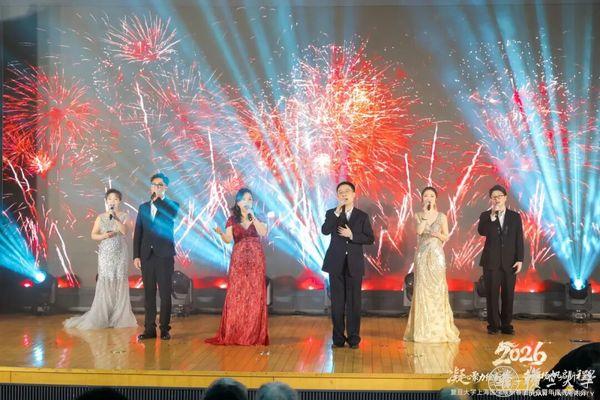 红梅报春,福满枫林。近日,校园内处处温暖祥和,主干道两侧换上了崭新的红色道旗,明道楼会场外灯笼高挂、福字点缀。2026年1月31日下午,复旦大学上海医学院在枫林校区明道楼隆重举行2026年新春团拜会暨年度表彰大会。