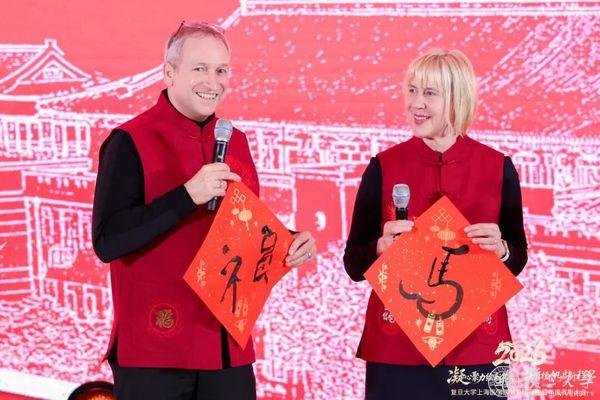来自智能医学研究院的双聘教授、科研伉俪——德国国家科学院院士RolandEils与夏里特医科大学终身教授IrinaLehmann携手书写汉字送上新春祝福,表达对跨文化医学领域合作的美好期待。
