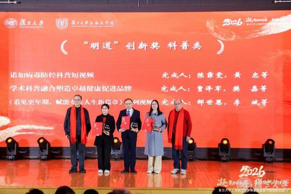 原上海医科大学校长姚泰,复旦大学原党委副书记、原上海医科大学党委书记彭裕文为“明道”科普奖获得者颁奖。