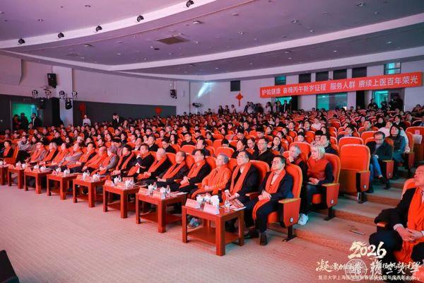 校党委书记裘新,校长、上海医学院院长金力和上海医学院党政领导,老领导代表,各院所平台、附属医院、学校及医学院职能部门负责人,师生医护员工代表,后勤保障员工代表,支持复旦上医发展的各界人士等欢聚一堂,以团拜之礼凝聚共识、表彰先进、昂扬斗志。