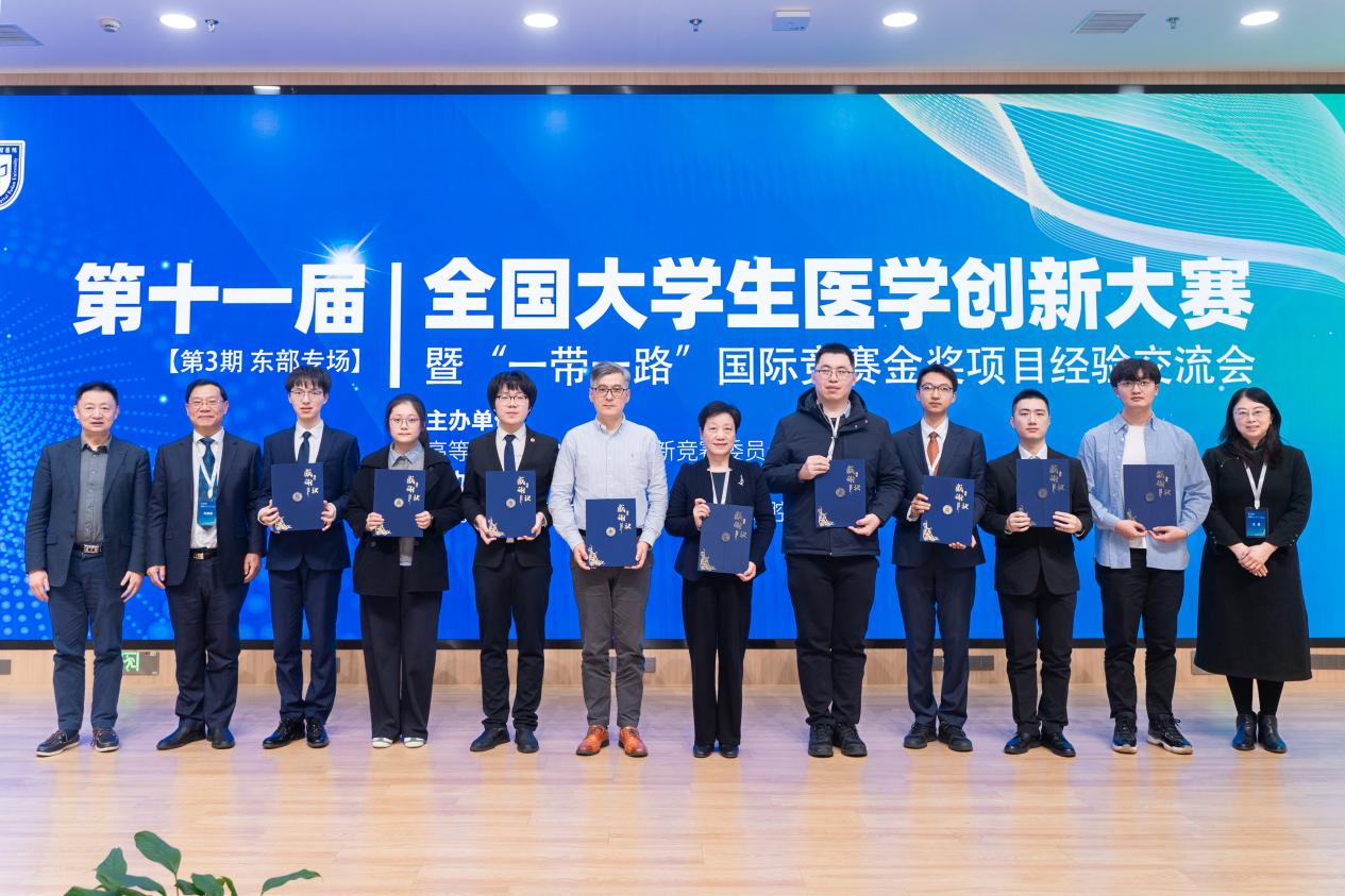 遵义医科大学刘建国教授、上海交通大学基础医学院王昊教授、蒋欣泉教授共同为参与线下分享的金奖得主及导师颁发了感谢状,以表彰他们在医创领域的突出贡献与精彩展示。