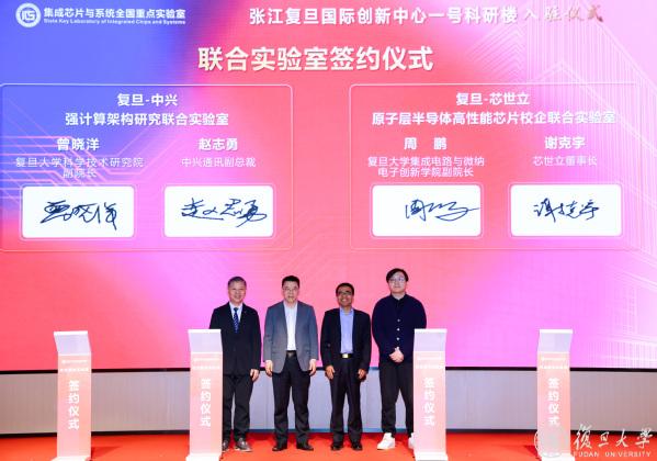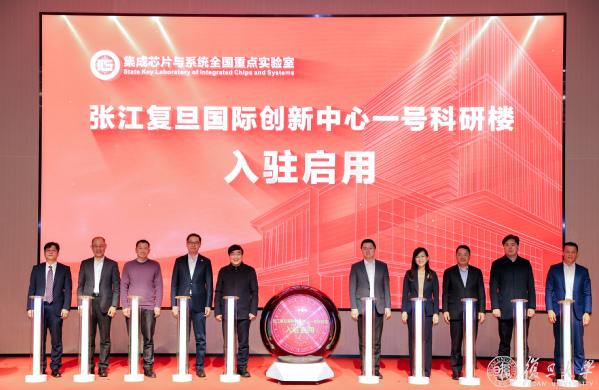 2月7日上午,张江复旦国际创新中心一号科研楼入驻仪式隆重举行,集成芯片与系统全国重点实验室借此迈入高质量发展新阶段。上海市科委副主任屈炜,浦东新区科经委副主任凌刚,中芯国际、江苏长电科技、中芯聚源、长江存储、长鑫存储、杭州士兰微、中兴通讯、华大九天、飞腾信息、复旦微电子集团、阿里巴巴达摩院、东微半导体、安路科技、合见工软等企业嘉宾,兄弟高校集成电路学院及国内其他全国重点实验室代表,复旦大学党委常委、副校长姜育刚,中国科学院院士、复旦大学党委常委、校长助理、科学技术研究院院长彭慧胜,中国科学院院士许宁生,中国科学院院士、复旦大学集成电路与微纳电子创新学院院长刘明等领导及师生代表齐聚现场,共同见证这一重要时刻。仪式由复旦大学科学技术研究院副院长、集成芯片与系统全国重点实验室副主任曾晓洋主持。