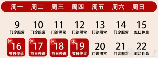 2月16日(除夕)、2月17日(初一)、2月18日(初二)、2月19日(初三)节假日门诊停诊,金山院区急诊、发热门诊照常。
