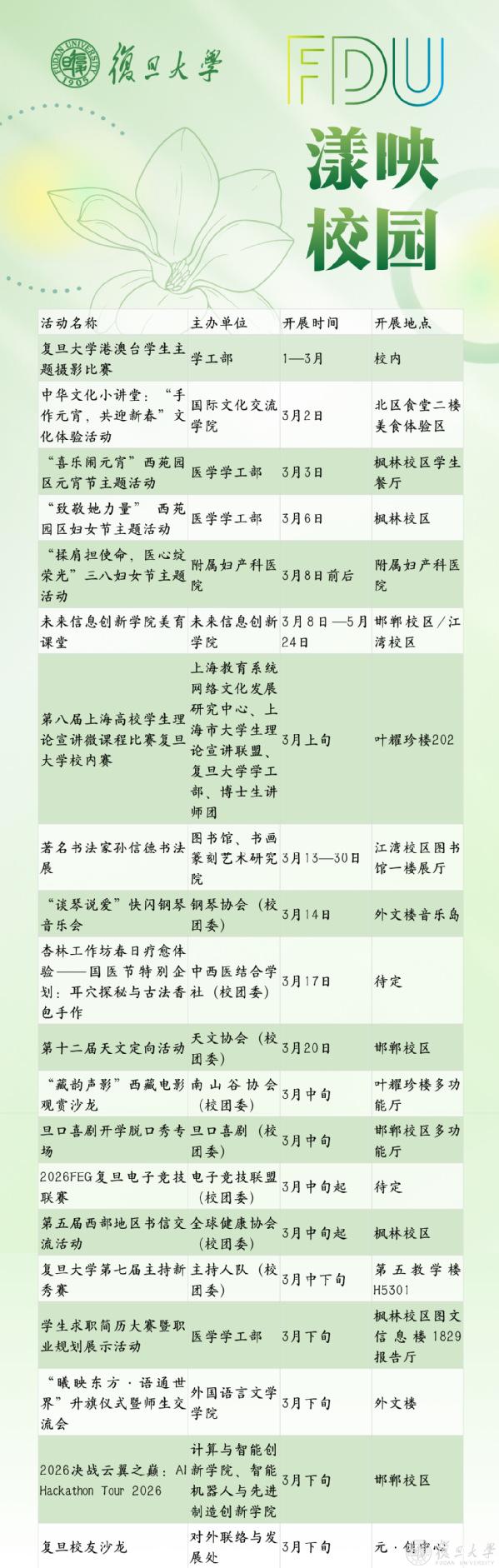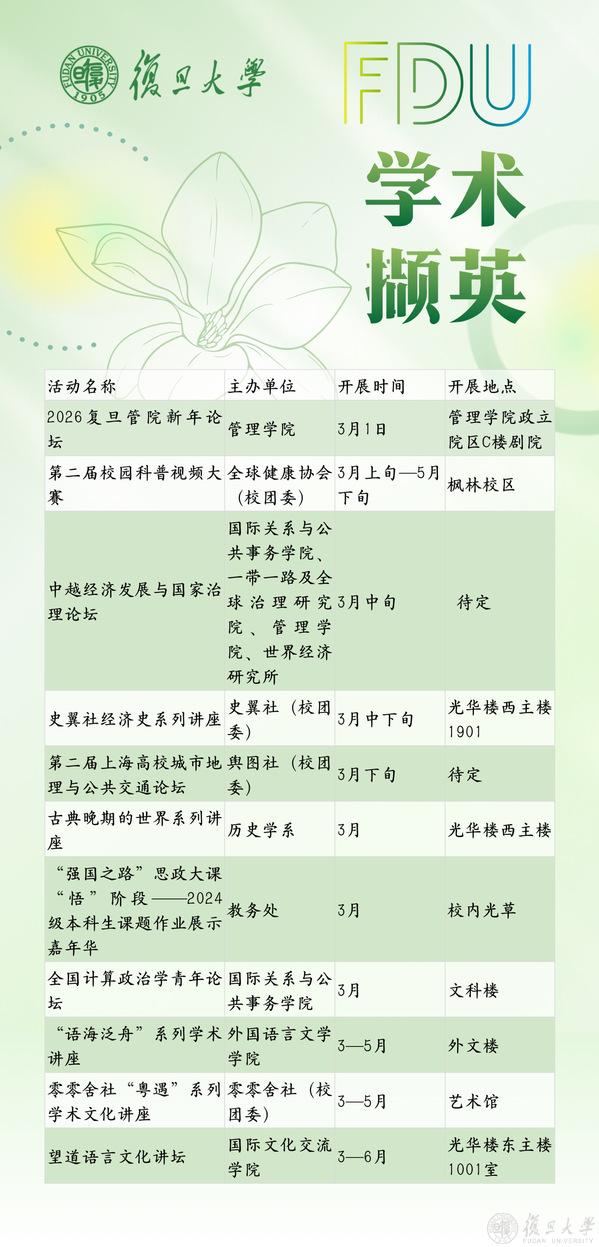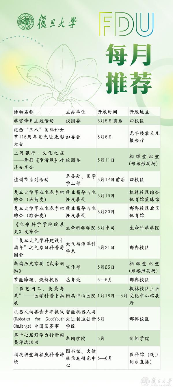 可微信搜索“复旦文化校历”小程序