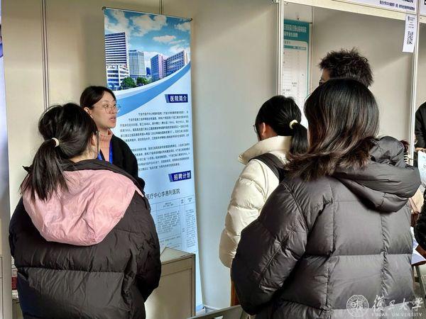 同学们手持精心打磨的简历,穿梭于各单位咨询台之间,与相关招聘负责人面对面咨询、深入洽谈,现场秩序井然、氛围热烈。不少用人单位的招聘负责人表示,复旦医学生专业基础扎实、学习能力强,具备良好的团队协作精神与创新意识。