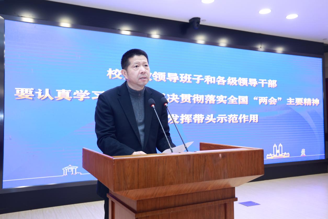 裘新就学习贯彻2026年全国两会精神提出三点要求。一是进一步提高政治站位。把学习贯彻全国两会精神作为重要的政治任务,深刻领悟总书记系列重要讲话精神,坚定拥护“两个确立”、坚决做到“两个维护”。二是进一步增强规划对接。对标对表国家、上海市“十五五”规划,完善学校“5+15+100”三级战略牵引体系,更好服务国家战略和区域经济社会发展。三是进一步突出真抓实干。从规划编制和贯彻执行两端共同发力,做好“十五五”开局重点工作。上下联动、协同发力,抓紧编制好“十五五”改革发展任务书。