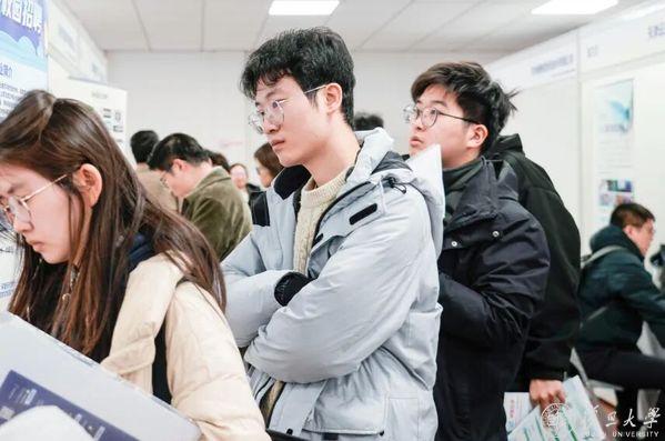 招聘会正式开始前,体育馆的门口就已经排起长队。智能材料与未来能源创新学院2022级博士生刘同学的研究方向为晶体管,他在招聘会重点关注光通信、集成电路相关企业。“光通信正在逐步替代传统电通信,是通讯、军工等行业未来的技术方向,我希望将个人发展融入科技进步和国家发展的浪潮中。”他在现场咨询了多个摊位,反复对比,寻找最适合自己发展的平台。
