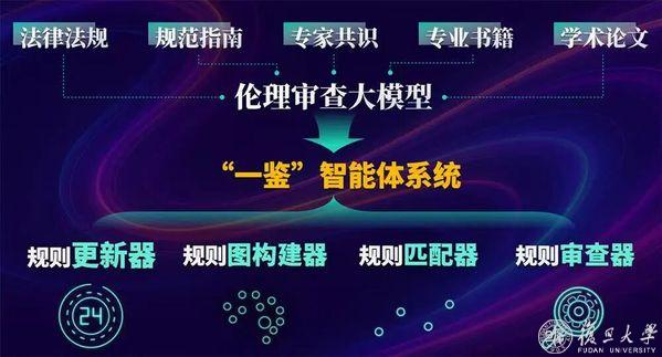 进入“AI for Science”时代,人工智能等前沿科技能否反哺伦理治理,从而促成“科技与伦理治理”的携手共进,已然成为值得探索的新议题。2023年起,王国豫带领学生与姜育刚、马兴军和生命科学学院杨亚军团队合作,着手开展伦理审查大模型的训练。经过近2年的努力,“一鉴”大模型应运而生。基于高质量伦理审查数据微调的专用大模型,“一鉴”集成了规则更新器、规则图构建器、规则匹配器和规则审查器四大核心模块,能够定期自动抓取、提炼最新政策法规,构建分层分领域的伦理规则知识图谱,并针对待审查的项目资料高效精准匹配相关规则。