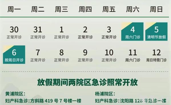 4月5日(清明)节假日门诊停诊,金山院区急诊、发热门诊照常。