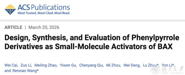 2026年3月20日,复旦大学药学院药物化学系王任小、李嫣团队在《药物化学杂志》(Journal of Medicinal Chemistry)发表了题为“Design, Synthesis, and Evaluation of Phenylpyrrole Derivatives as Small-Molecule Activators of BAX”的论文。该机制研究不仅从理论层面解释了BAX小分子激活剂的活性特点,也为未来设计能更有效模拟天然肽、实现完全激活的下一代BAX激动剂提供了关键的理论指导。