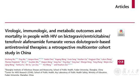 2026年3月19日,复旦大学公共卫生学院邹华春课题组在《柳叶刀-区域健康(西太平洋)》(The Lancet Regional Health - Western Pacific)发表题为“Virologic, immunologic, and metabolic outcomes and mortality in people with HIV on bictegravir/emtricitabine/tenofovir alafenamide fumarate versus dolutegravir-based antiretroviral therapies: a retrospective multicenter cohort study in China”的论文,联合我国19个省市级疾控中心、传染病医院,开展了一项大规模多中心回顾性队列研究,系统比较了B/F/TAF、DTG+TDF+3TC,以及DTG/3TC在HIV初治人群中的病毒学、免疫学、代谢结局及死亡风险。研究表明,在HIV慢病化管理时代,初始抗逆转录病毒治疗方案的选择,应从单纯关注病毒学抑制,进一步转向兼顾免疫恢复、代谢安全性及远期预后的综合评估框架。