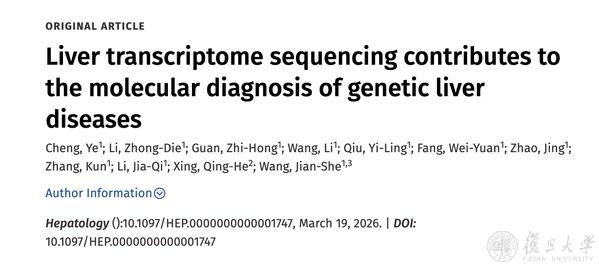 2026年3月19日,复旦大学附属儿科医院王建设团队联合复旦大学附属儿科医院/生物医学研究院邢清和团队,在《肝脏病学》(Hepatology)发表题为“Liver transcriptome sequencing contributes to the molecular diagnosis of genetic liver diseases”的研究论文。该研究系统评估了肝组织RNA测序在遗传性肝病诊断中的应用价值,尤其针对不能发现符合遗传模式的致病性变异,或者发现的变异不能明确致病性的情况,为进一步提高分子诊断率提供了重要依据。