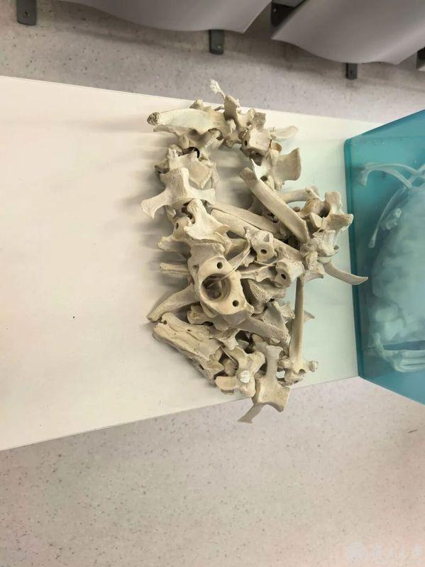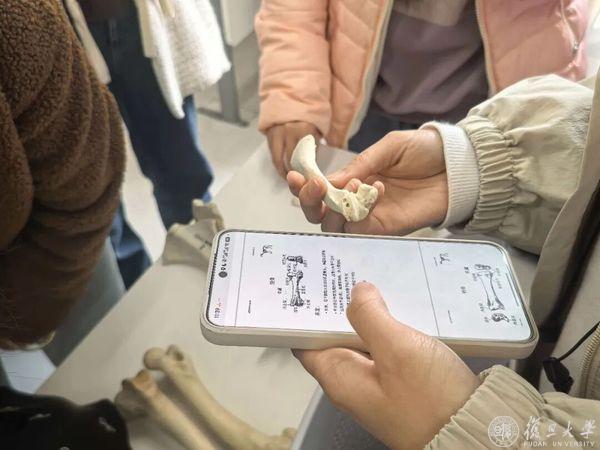 实践环节中,学生被分为两组:一组从前肢骨骼中进行挑选与辨认,另一组则负责后肢骨骼。两组需先自主观察,再互相讲解。大家纷纷拿出预习讲义,手捧骨骼,认真比对、讨论。