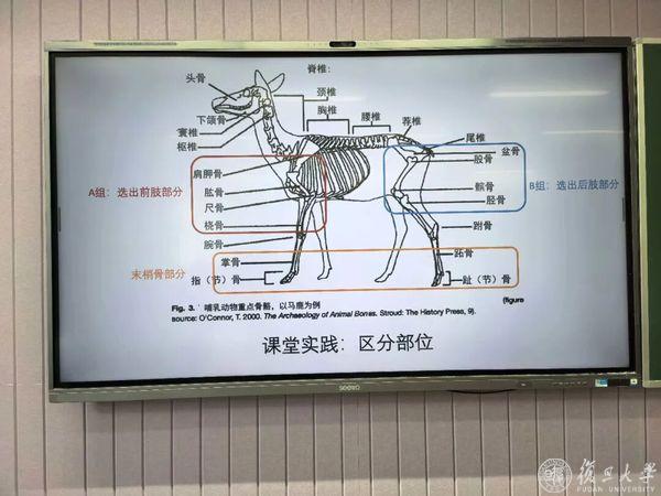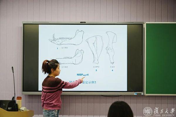 “动物考古学”也是系内首个系统讲授动物考古理论、方法并配套实验室实操环节的专业课程。它引入了国际通行的动物考古训练体系——包括骨骼鉴定、埋藏学实验、遗址出土标本实操等,填补了复旦在动物考古教学方面的空白。在学生中,这门课也颇具人气,成为许多本科生走进考古实践的“启蒙一课”。