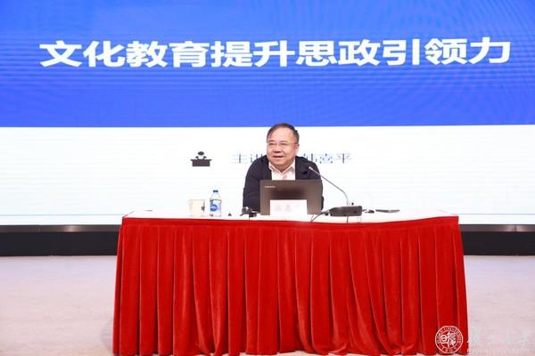 开班式后,首场专题辅导报告开讲。吉林大学原党委副书记、中央马克思主义理论研究和建设工程首席专家、全国思想政治理论课优秀教师韩喜平以“以文化教育提升思政引领力”为题作专题授课。他指出,思政引领力是中国特色社会主义教育强国的首要特质,是举旗定向、凝心聚气、育化人心的文化软实力,文化教育是提升思政引领力的关键抓手。韩喜平教授结合深厚理论功底与丰富实践经验,从政治高度、历史厚度、事实信度、哲理深度、自信态度五个维度,系统阐释以文化增强思政引领力的内在逻辑与实践路径,强调要以中华优秀传统文化、革命文化、社会主义先进文化为根基,把思政课讲深讲透讲活,引导青年将爱国心、报国情、强国志内化为理想信念,为提升新时代思政育人实效提供了理论遵循与实践指引。