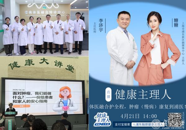 4月17日,浦东医院携手上海市肺科医院,将辐射低、精度高的低剂量螺旋CT移动检测车开进老港社区文化活动中心,为居民提供免费肺癌早筛服务,医师团队现场解读报告,破解居民“磨玻璃结节”焦虑。同步推出的还有门诊公益活动,胃肠外科、胸外科、肿瘤科、妇产科等多科室协同,针对肺癌、胃肠癌、妇科肿瘤等常见癌种,提供CT、内镜等公益筛查名额,以惠民举措推动癌症筛查从“被动等”转向“主动查”。聚焦肿瘤康复,浦东医院推出院长李济宇领衔的“健康主理人”短视频,围绕肿瘤患者的体重管理与全程康复。打破“肿瘤患者只能静养”的常见误区,传递科学运动与合理膳食的核心价值。