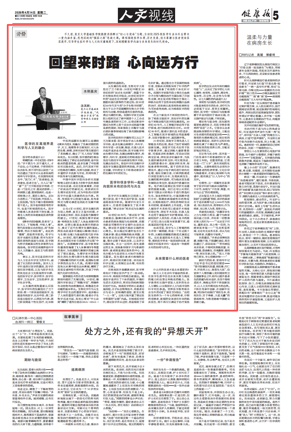 明朝的裴一中在《言医·序》中说:“学不贯古今,识不通天人,才不近仙,心不近佛者,宁耕田织布取衣食耳,断不可作医以误世!”这句话道出了医学对从业者极高的精神与学识要求。在我国传统观念中,“医乃仁术”,“医者易也,医者意也,医者艺也”。古人以“易”“意”“艺”三字概括医学特质:它是一门变化之学,需灵活思辨;一种洞察之道,需领悟病机;也是一项精微之艺,需匠心施为。正如古语所云:“下医医病,中医医人,上医医国。”医生不能仅看到病而看不见人。医学是持续思考的学科,也是不断精进的技术。医学伴随着人类进步而不停发展,改善全人类的身体健康是医者的崇高理想。