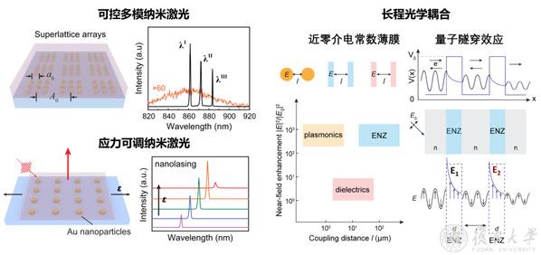 这是一种介电常数趋近于零的特殊材料,王丹青发现,光在其中波长被拉伸,相位变得均匀,能产生极强的近场增强效应。近零介电常数薄膜之间可以产生长程光学耦合,振荡行为类比于量子隧穿效应。这项发现为发展新型量子模拟平台提供了全新思路,相关成果也于Nature Communications上发表。巧合的是,虽然基于不同材料体系,这和她之前光学超晶格的工作在长程光学作用机理上有着异曲同工之处。