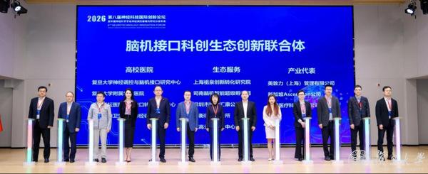 本次大会复旦大学神经调控与脑机接口研究中心联合脑机接口科创转化中心牵头,同步启动了“脑机接口科创生态创新联合体”建设,上海祖泉创新转化研究院、华山医院、天坛医院脑机接口转化研究中心、上海精神卫生中心神经调控中心、炜衡律所事务所、威高云行智创中心等战略合作伙伴,以及深圳国创汇康、诺诚医疗、美敦力(上海)、新加坡AscenZion等国内外企业合作伙伴代表共同启动脑机接口科创生态建设。