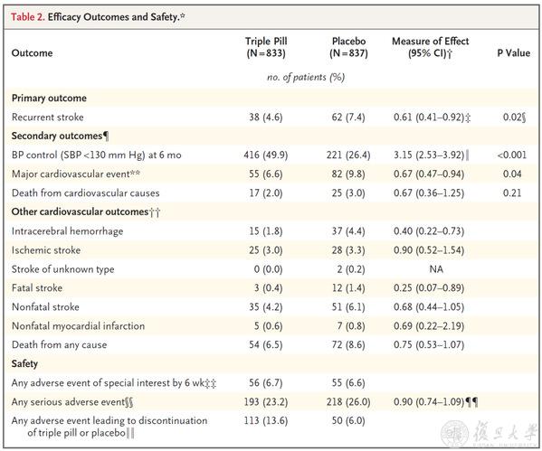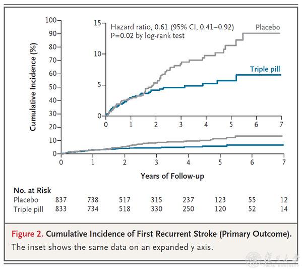 研究主要结局,三联降压药可使卒中复发率下降39%