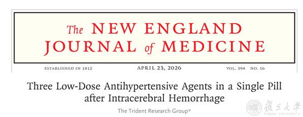 该研究结果以“脑出血后低剂量三联降压药”为题,于北京时间4月23日发表在《新英格兰医学杂志》(The New England Journal of Medicine,NEJM)。