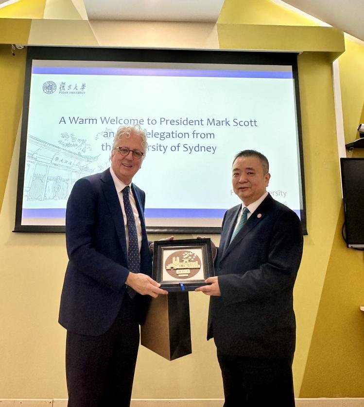 斯科特对复旦大学的热情接待表示感谢。他表示,悉尼大学与复旦大学的合作关系深厚而持久,双方在学术交流、人才培养等方面有着广泛的共同兴趣。斯科特高度评价复旦大学在AI教育、跨学科融合及国际合作方面的探索,并表示悉尼大学愿与复旦大学深化合作。悉尼大学在上海设立了新的中国中心,他希望以此为契机进一步拓展与复旦及中国高校的合作网络。