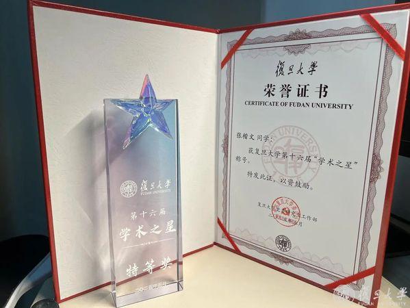 张楷文荣获复旦大学第十六届“学术之星”特等奖