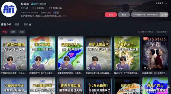 傅正航创办的科普账号