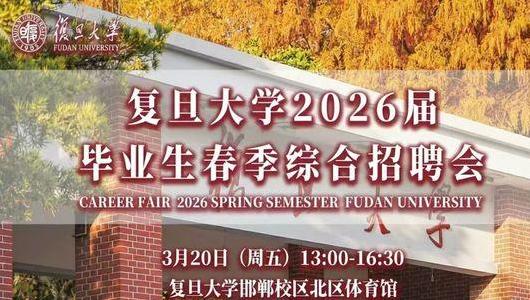 春风送暖,万物竞发复旦大学2026届毕业生春季招聘会3月20日(周五)13:00-16:30将在邯郸校区北区体育馆举行...