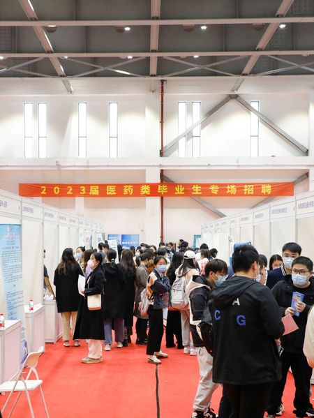 3月24日下午,复旦大学2023届医学(药)类毕业生专场招聘会在枫林校区学生体育活动中心举行。活动吸引到近1...